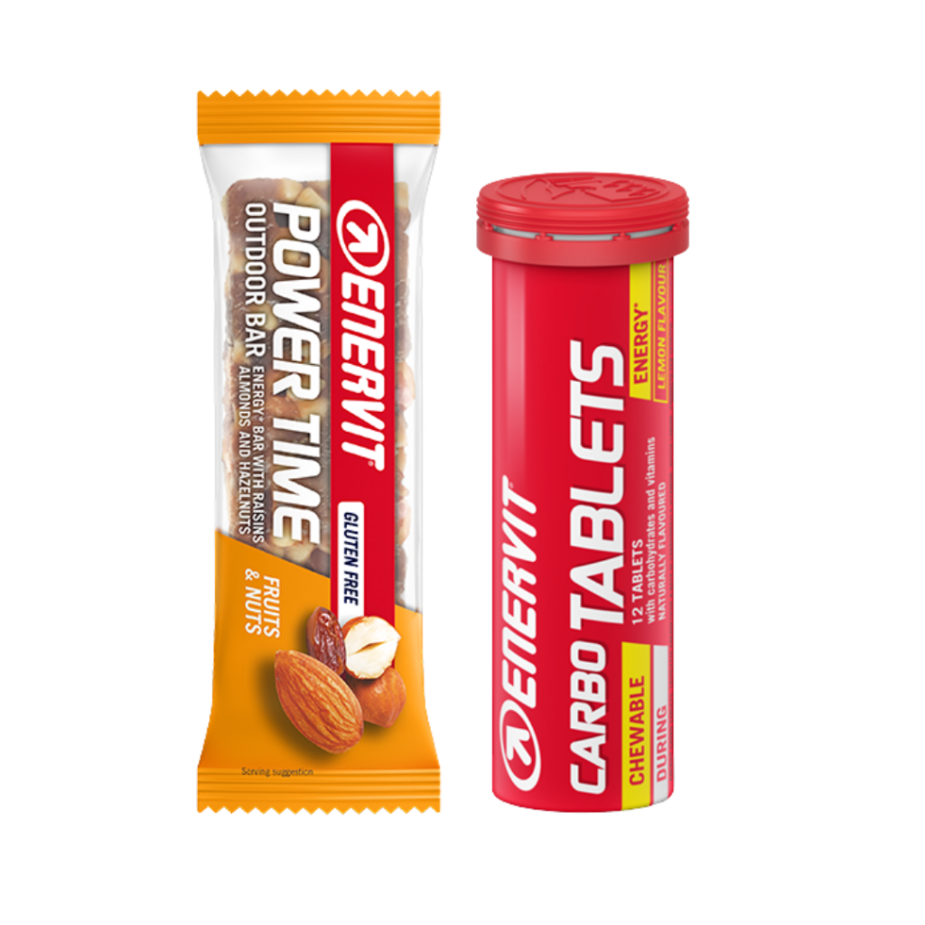 Consume Power Time Dried Fruits energy bar and 1–2 energy tablets depending on how you feel.